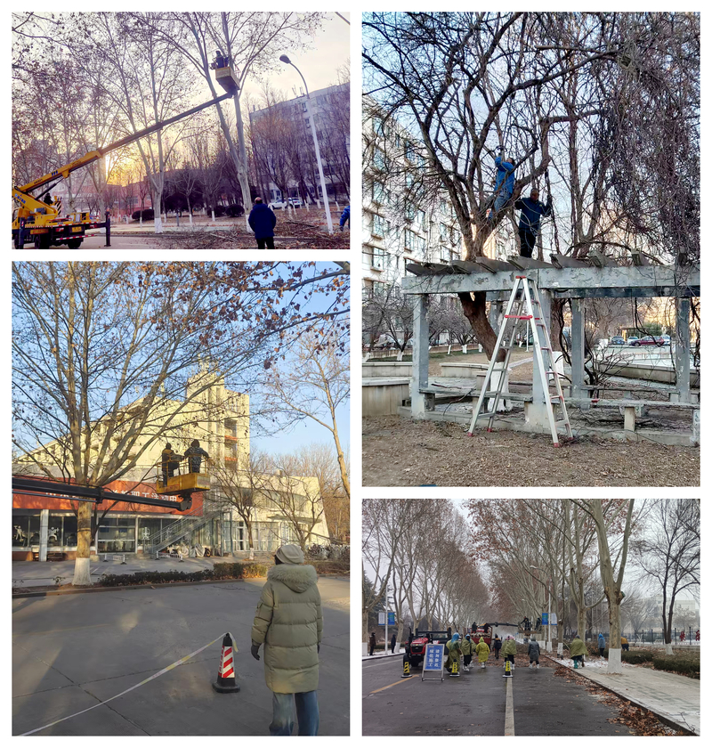 中心工作人员利用冬季植物休眠黄金期,对学校青年路、鸿图路、弘毅路、博雅路、湖滨路、广场东西路、文化路、二体西侧、梅园南侧、三四食堂周围的法桐、国槐等1000余株进行修剪,不仅消除了枯枝、病虫枝及过低枝条带来的安全隐患,也优化了树木冠形,促进其春季健康萌发