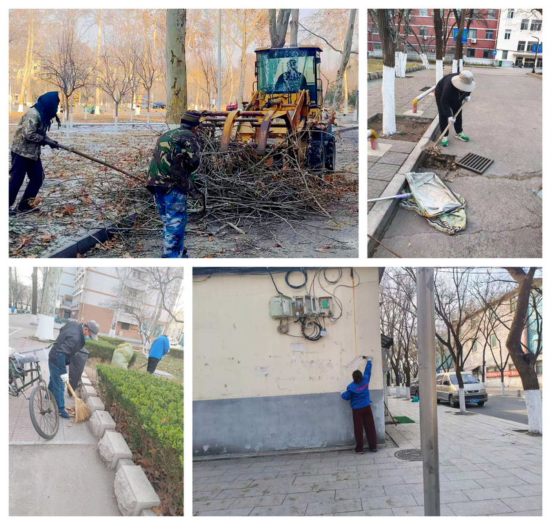 工作人员对楼宇外公共区域进行了彻底清理,使校园整体环境卫生面貌焕然一新。清除了各类张贴物残留和广场、绿化带内的枯枝落叶清理了雨水箅内杂物,确保春季融雪及雨季排水通畅